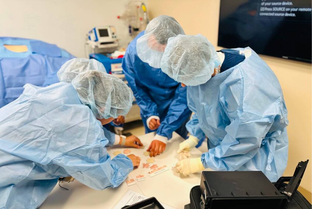 The escape box uses a box-within-a-box format that requires learners to solve clinically relevant challenges to progress. Tasks are designed to reinforce policies, procedures, and diagnostic reasoning while promoting teamwork and communication under time pressure.
